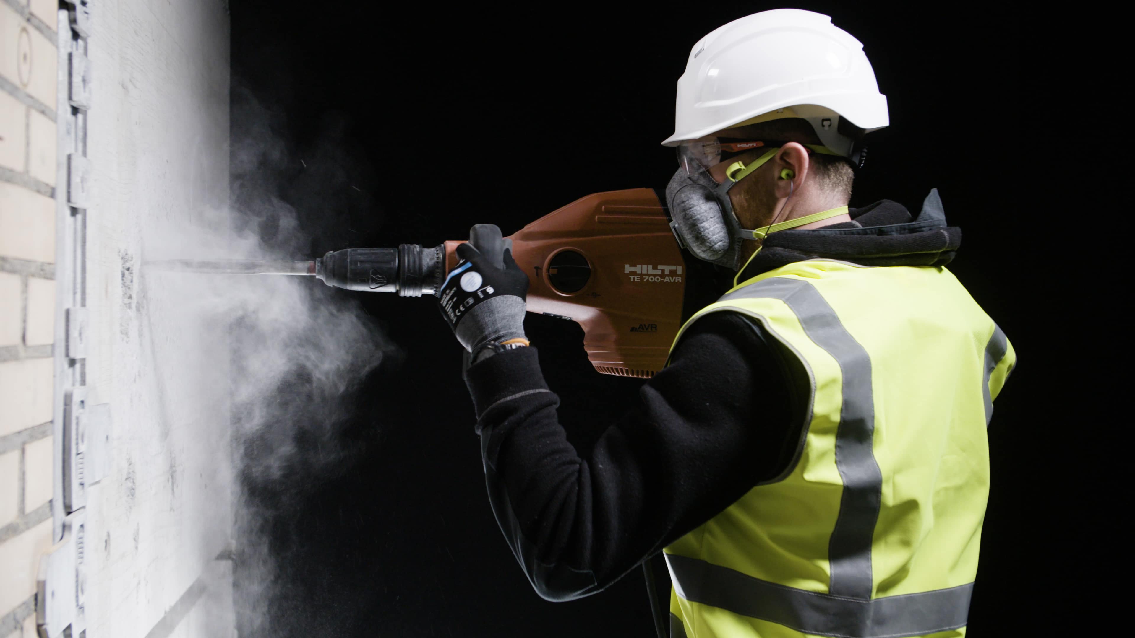 集成式除塵系統(例如 TE-DRS)與 TE 6-A22 無繩電錘配合使用時,清除灰塵的效果可達 97%。