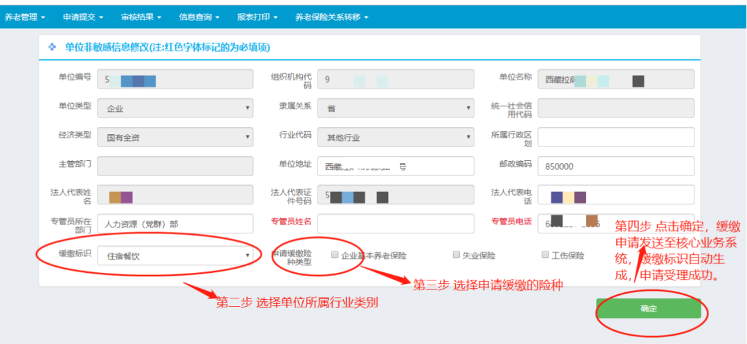 注冊成功后按下圖標記流程,申請緩繳社保費業(yè)務。