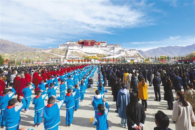 回望光輝歷史,激揚(yáng)奮進(jìn)力量。民主改革65年來,在中國(guó)共產(chǎn)黨的堅(jiān)強(qiáng)領(lǐng)導(dǎo)下,西藏各族兒女團(tuán)結(jié)奮斗,與全國(guó)人民一道迎來了從站起來、富起來到強(qiáng)起來的偉大飛躍。特別是黨的十八大以來,習(xí)近平總書記親臨西藏視察指導(dǎo),兩次召開中央西藏工作座談會(huì),為西藏把脈定向、領(lǐng)航掌舵,推動(dòng)西藏各項(xiàng)事業(yè)取得全方位進(jìn)步、歷史性成就。