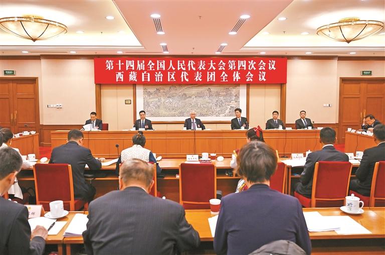 3月6日,西藏代表團舉行全體會議,傳達學(xué)習(xí)習(xí)近平總書記在參加十四屆全國人大四次會議江蘇代表團審議時的重要講話精神,審議政府工作報告、審查“十五五”規(guī)劃綱要草案。