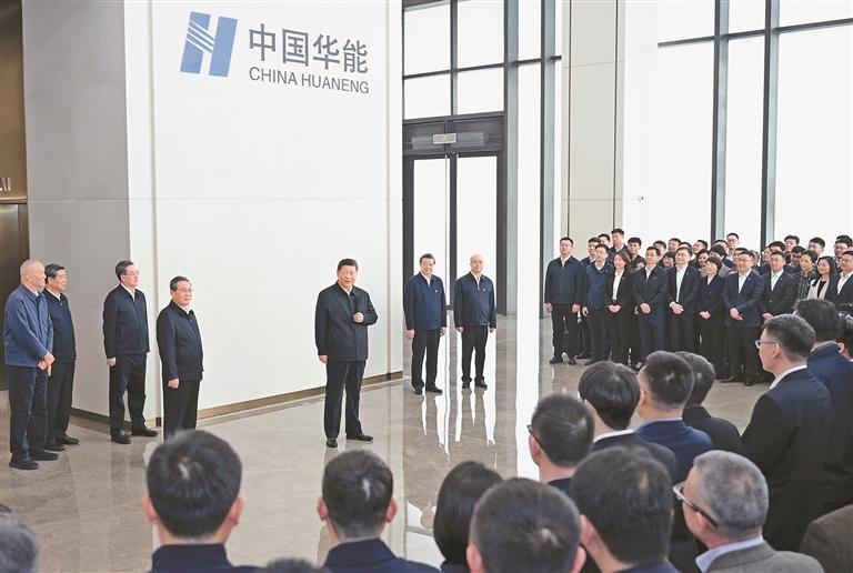 隨后,習(xí)近平來到中國華能集團有限公司考察。2025年10月,華能集團總部及相關(guān)子公司1000多名員工遷駐雄安新區(qū)。習(xí)近平走進企業(yè)運營監(jiān)控與應(yīng)急指揮中心,聽取企業(yè)搬遷、產(chǎn)業(yè)布局、創(chuàng)新發(fā)展等情況介紹,察看企業(yè)實時運營數(shù)據(jù)和遠程圖像。他強調(diào),要以遷入雄安新區(qū)為契機,激發(fā)企業(yè)干部職工創(chuàng)新創(chuàng)業(yè)的積極性主動性,為加快建設(shè)新型能源體系、建設(shè)能源強國作出新貢獻。