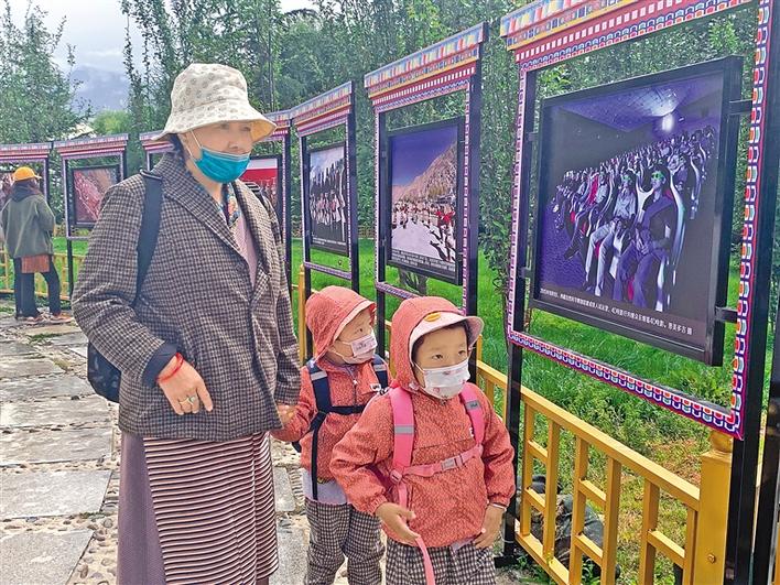 圖為群眾在宗角祿康公園內(nèi)參觀“西藏·70——慶祝西藏和平解放70周年影像展”。本報記者 楊小娟 攝