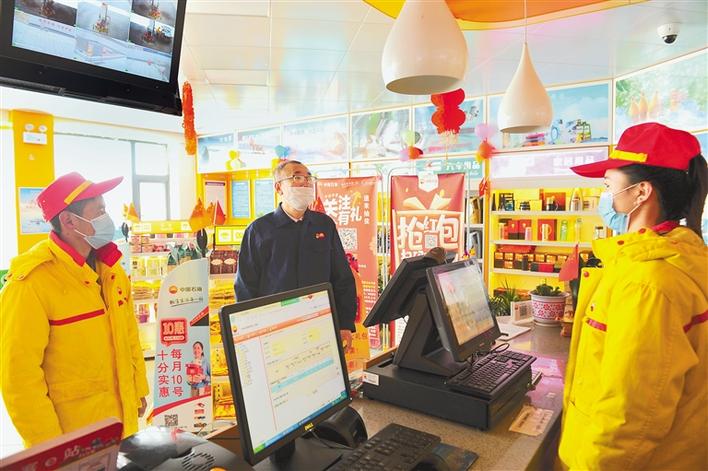 圖為葛立均(中)在考察中石油阿里銷售分公司加油站過(guò)程中走訪慰問(wèn)干部職工。 本報(bào)記者 溫凱 洛桑旦增 攝